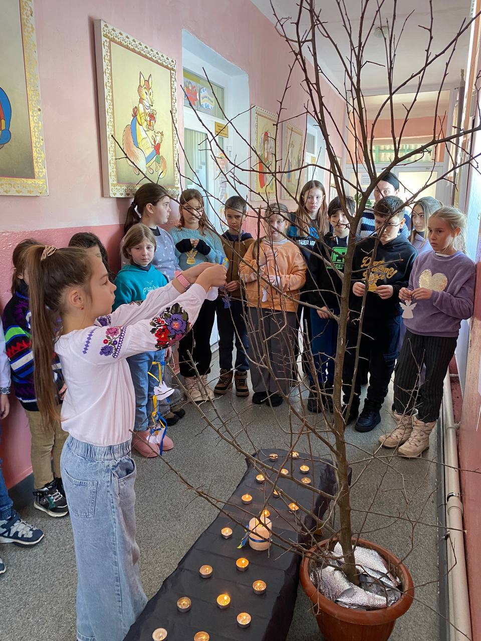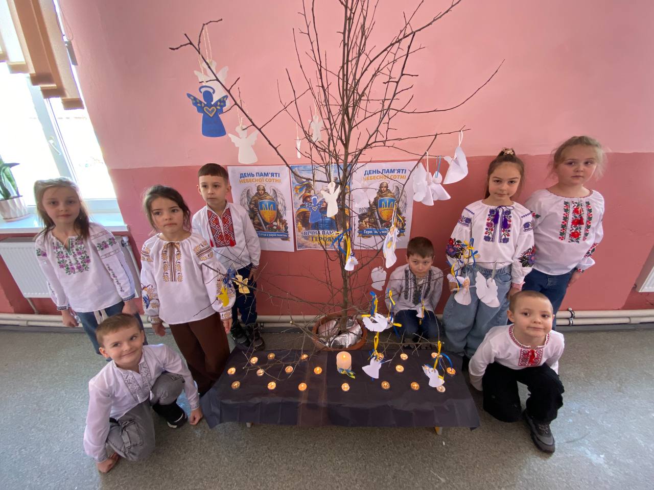 У гімназії відбувся захід до Дня Героїв Небесної Сотні за участю здобувачів освіти 1–4 класів. Діти вшанували пам’ять Героїв, які віддали своє життя за свободу та майбутнє України.