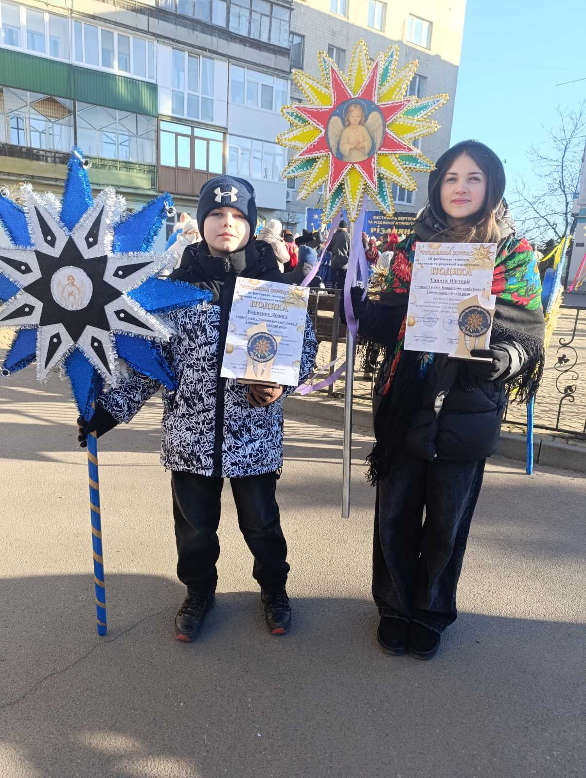 Здобувачі освіти нашої гімназії були учасниками Різдвяної ходи. Саме там їм вручили подяки та грошові винагороди за кращі Різдвяні зірки. Молодці.